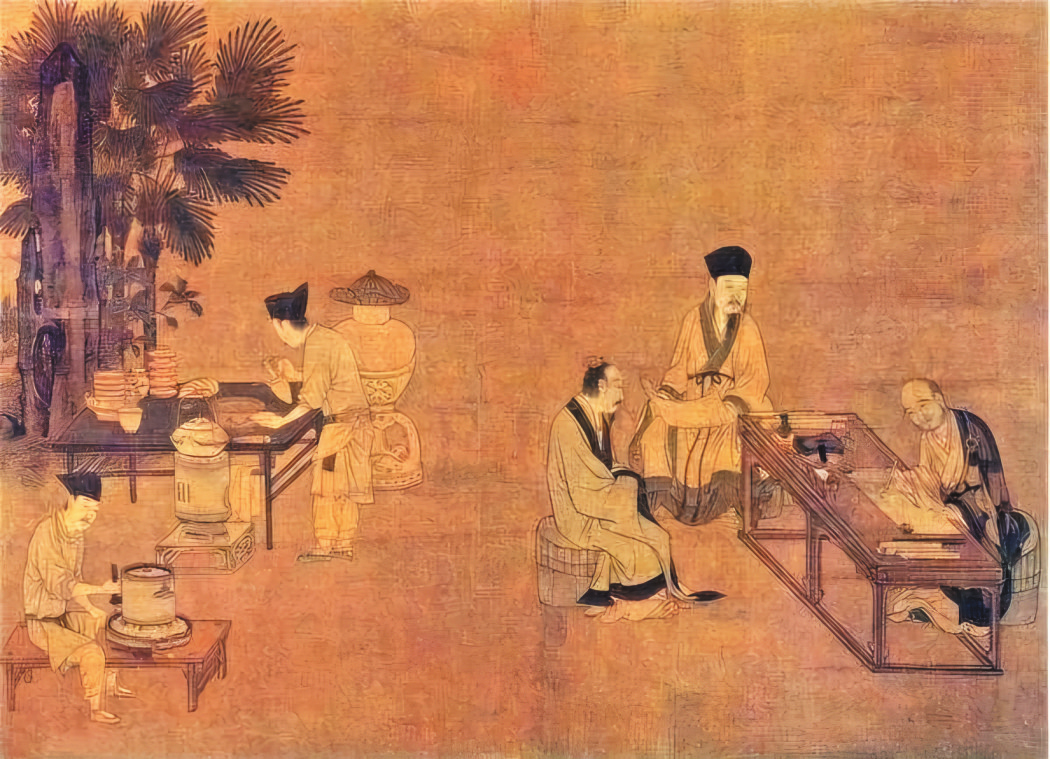 藝術(shù)為抹茶文化增添了無(wú)窮魅力。從南宋劉松年的《盧仝烹茶圖》,到宋人以茶汁為墨的“茶畫(huà)”,茶已然超越味蕾,升華為藝術(shù)。畫(huà)家以濃淡不同的茶汁在宣紙上揮毫潑墨,利用茶汁中的單寧酸,創(chuàng)造出變化莫測(cè)的色彩效果。