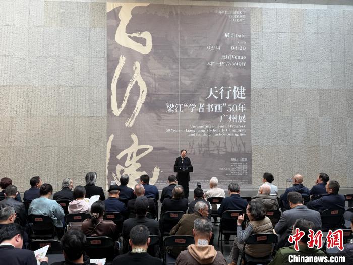 中新網(wǎng)廣州3月16日電 (記者 方偉彬)天行健——梁江“學(xué)者書畫”50年廣州展16日在廣東美術(shù)館開幕,活動(dòng)由中國(guó)美術(shù)館、中國(guó)國(guó)家畫院、廣東美術(shù)館共同主辦。