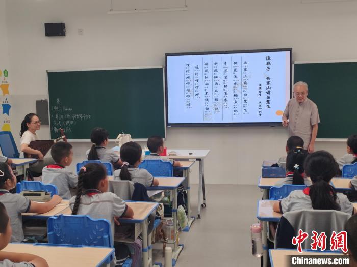 2024年10月,臺灣南音藝術家卓圣翔在廈門市翔安區(qū)實驗學校教授音樂課。 (羅純禎 供圖)