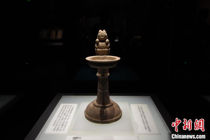 7月16日,河南洛陽漢魏洛陽故城遺址博物館,西晉時期“招財貓”造型的陶熨斗亮相。 王宇 攝