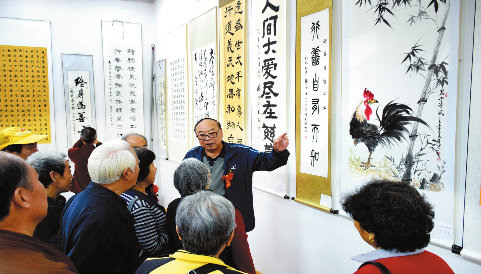 書(shū)畫展現(xiàn)場(chǎng),張啟明與書(shū)畫愛(ài)好者互動(dòng)