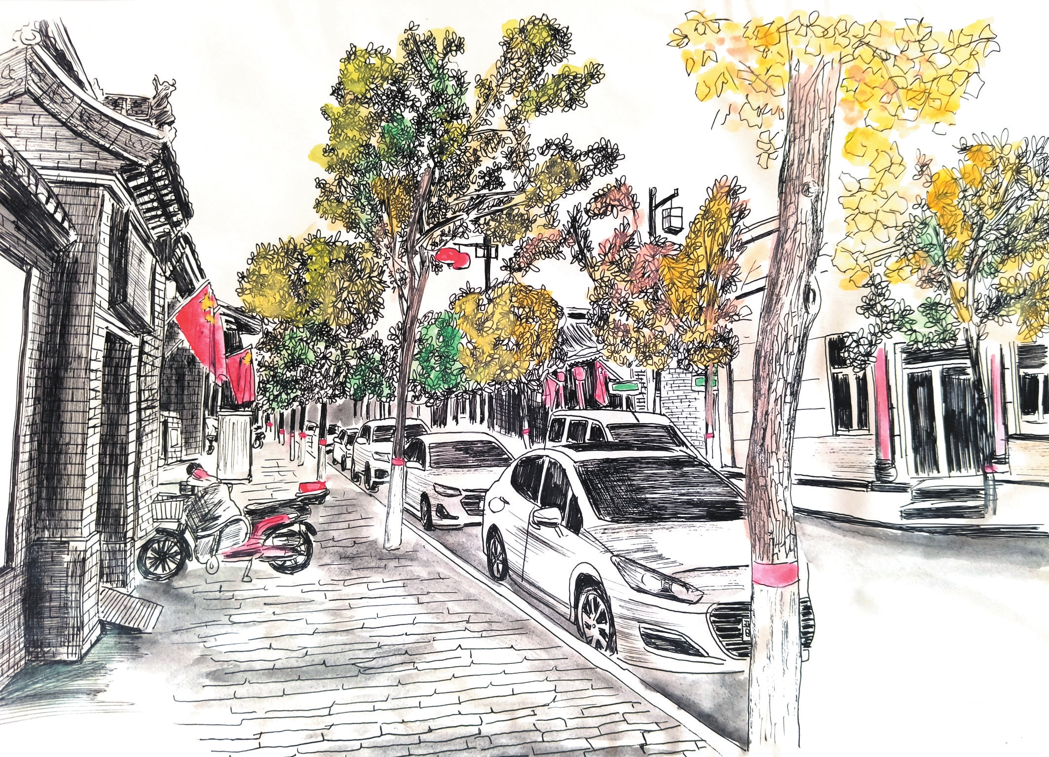 作為一種獨(dú)特的藝術(shù)形式,鋼筆畫以其細(xì)膩的線條、嚴(yán)謹(jǐn)?shù)臉?gòu)圖,通過(guò)控制握筆的速度和力度,畫出不同粗細(xì)的線條,從而表現(xiàn)物象。岢嵐縣美術(shù)教育工作者侯龍飛近年來(lái)通過(guò)鋼筆畫記錄生活、表達(dá)情感,他的系列鋼筆畫《忻州古城》《岢嵐街景》等作品描繪城市變遷與時(shí)代風(fēng)貌走紅網(wǎng)絡(luò)。
