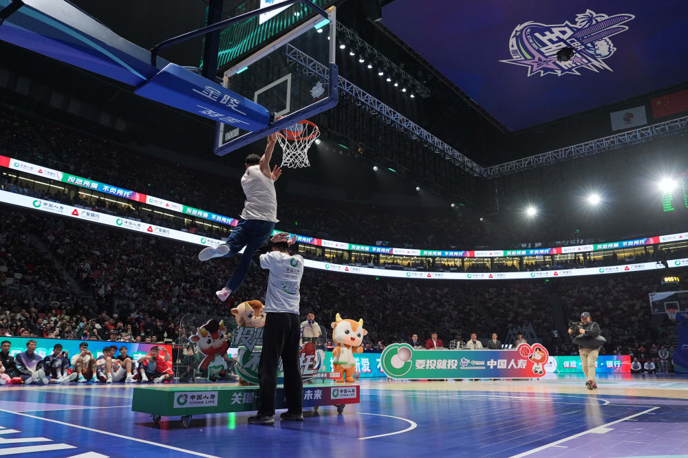 中場(chǎng)休息期間進(jìn)行了三個(gè)單項(xiàng)賽的比拼。主場(chǎng)作戰(zhàn)、來自福建隊(duì)的黎伊揚(yáng)獲得技巧挑戰(zhàn)賽冠軍。山西隊(duì)原帥在三分球大賽決賽投出25分,以一分優(yōu)勢(shì)險(xiǎn)勝龍獅隊(duì)賈明儒??刍@大賽的冠軍是特邀外卡球員萬磊,他在比賽中穿著牛仔褲飛躍一人,完成“蝎子擺尾”式的扣籃。