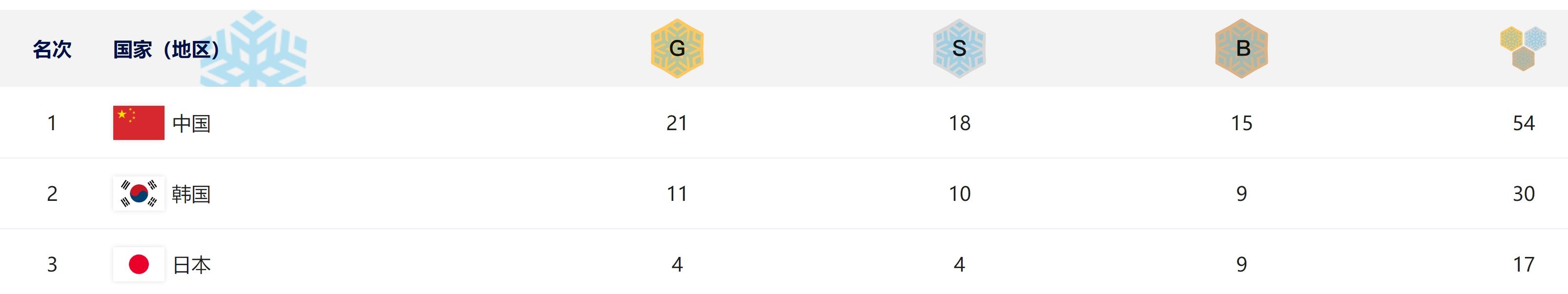 單日再奪6金,中國代表團在本屆亞冬會已奪得21金18銀15銅,21金也創(chuàng)造了中國代表團參加單屆亞冬會歷史最佳成績(此前為2007年長春亞冬會的19金)。韓國隊目前以11金10銀9銅排名獎牌榜第二,日本隊以4金4銀9銅排名第三。