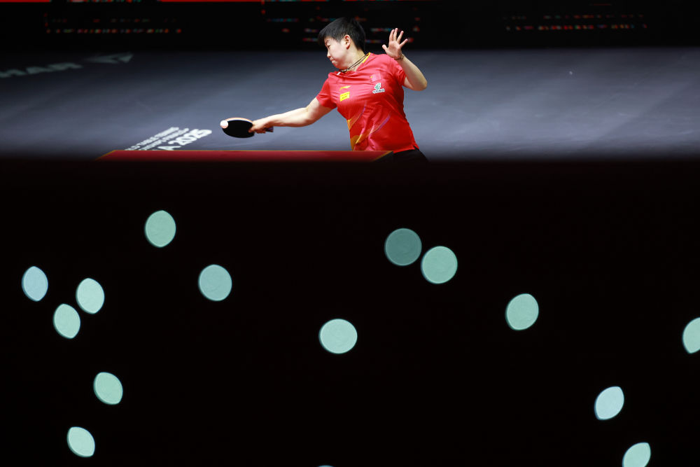 5月22日,孫穎莎在比賽中回球。新華社記者 劉續(xù) 攝