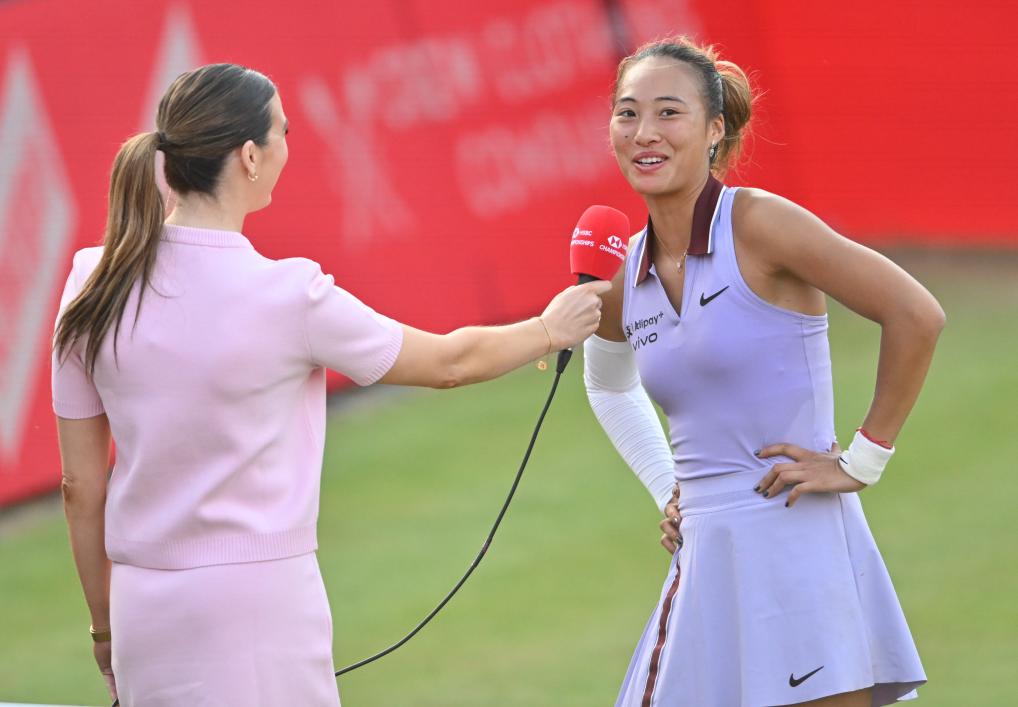 6月12日,鄭欽文(右)在比賽后接受采訪。新華社發(fā)(劉穎 攝) 另外,張帥和澳大利亞搭檔佩雷茲繼第一輪后再次經(jīng)過兩個搶七局比拼獲勝,晉級女雙四強(qiáng)。她們13日將與達(dá)尼麗娜/施耐德組合爭奪決賽席位。 (責(zé)任編輯:蔡文斌) |