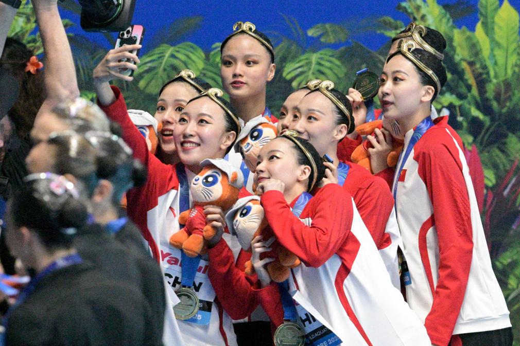 7月22日,中國隊(duì)在頒獎(jiǎng)儀式后慶祝。新華社發(fā)(鄧智煒攝)