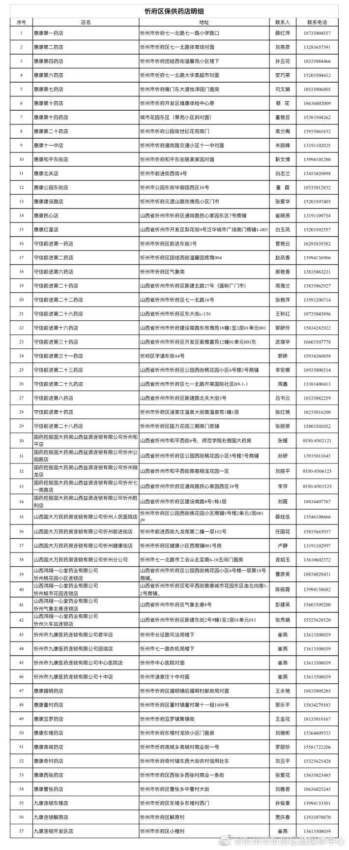 忻府區(qū)保供藥店聯(lián)系方式