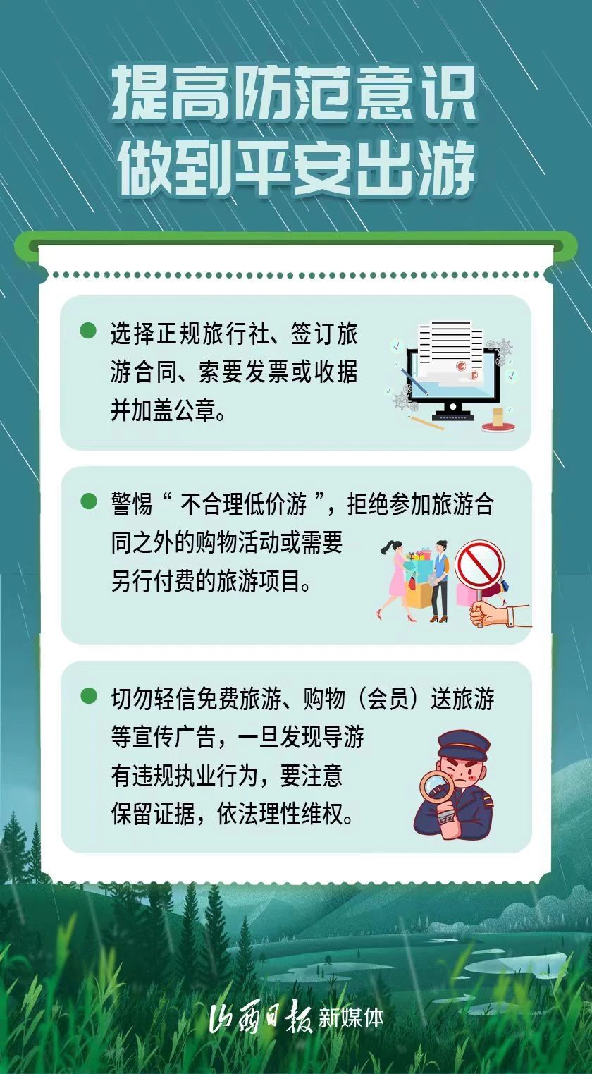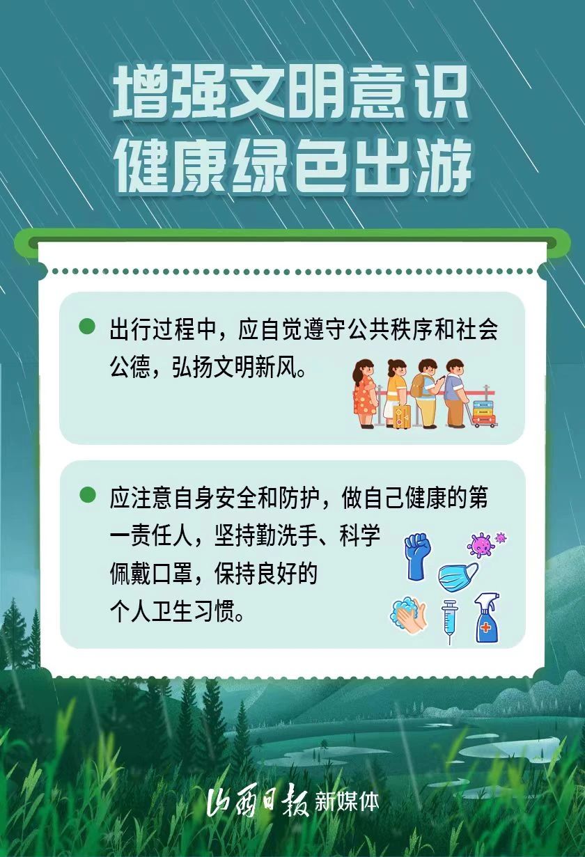 暑假,很多人開始規(guī)劃外出旅游行程。汛期,是強(qiáng)降雨、大風(fēng)、山洪等惡劣天氣多發(fā)期。暑假+汛期,省文旅廳發(fā)布出游提示,提醒廣大游客密切關(guān)注旅游安全,健康平安出游。