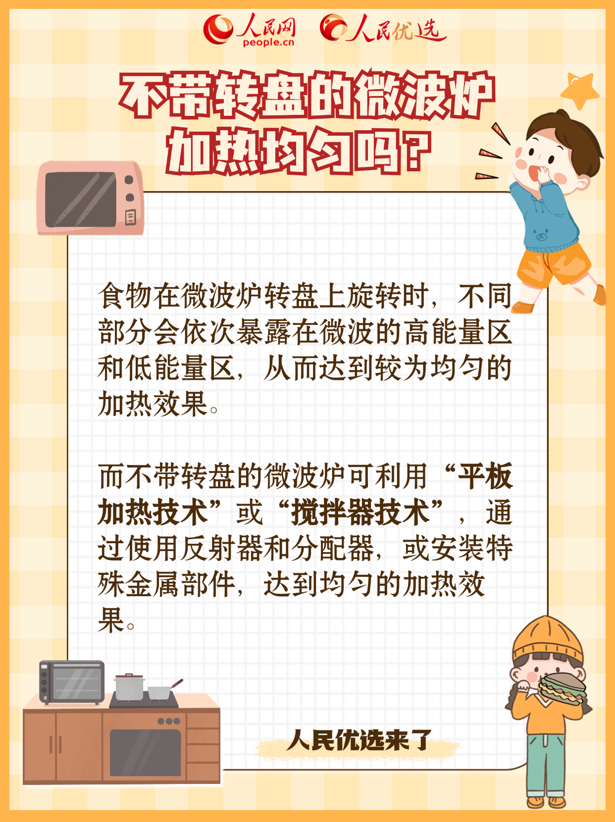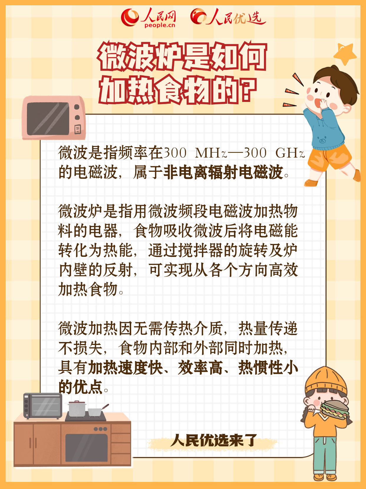 微波爐是廚房“得力助手”,加熱食物速度快,效率還高。它對(duì)食物營(yíng)養(yǎng)有影響嗎?有輻射嗎?哪些物品不能進(jìn)微波爐?怎么用更安全? 人民優(yōu)選來(lái)了—— 本期指導(dǎo)專家:貴州民族大學(xué)物理與機(jī)電工程學(xué)院教授、副院長(zhǎng)王聲權(quán)。