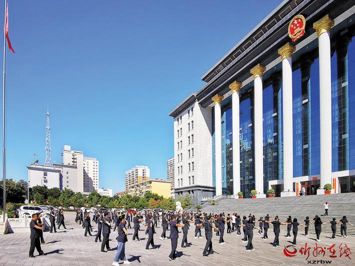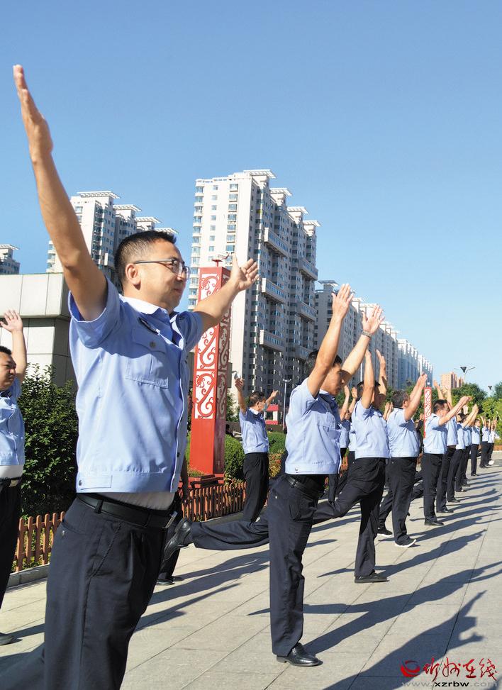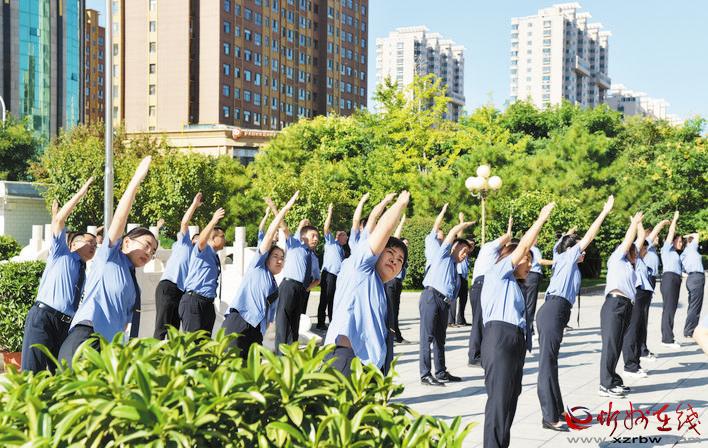 9月3日,市體育局在全市組織開展的“文明忻州、全民健身”系列活動(dòng)拉開了帷幕。圖為作為我市首批健身示范單位的市公安局、市人民檢察院、市中級(jí)人民法院正在組織全體干警職工做工間操。(張存良 攝影報(bào)道)