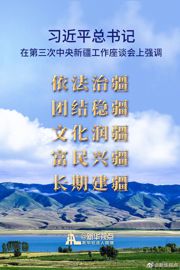 細心的人們不難發(fā)現(xiàn),這次座談會則將有關(guān)要求拓展為“依法治疆、團結(jié)穩(wěn)疆、文化潤疆、富民興疆、長期建疆”,增加了“文化潤疆”和“富民興疆”。