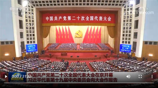 10月16日,中國共產(chǎn)黨第二十次全國代表大會(huì)在北京人民大會(huì)堂開幕。習(xí)近平代表第十九屆中央委員會(huì)向大會(huì)作報(bào)告。新華社記者 饒愛民攝