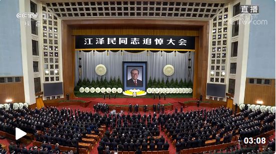 12月6日上午10時,黨中央、全國人大常委會、國務院、全國政協(xié)、中央軍委在北京人民大會堂隆重舉行江澤民同志追悼大會。