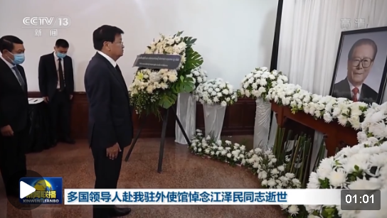 老撾人民革命黨中央總書記、國家主席通倫·西蘇里和老撾政府總理潘坎·維帕萬到中國駐老撾使館吊唁,表示江澤民同志為中國特色社會主義偉大事業(yè)作出卓著貢獻,為新世紀老中關(guān)系發(fā)展發(fā)揮重要引領(lǐng)作用。