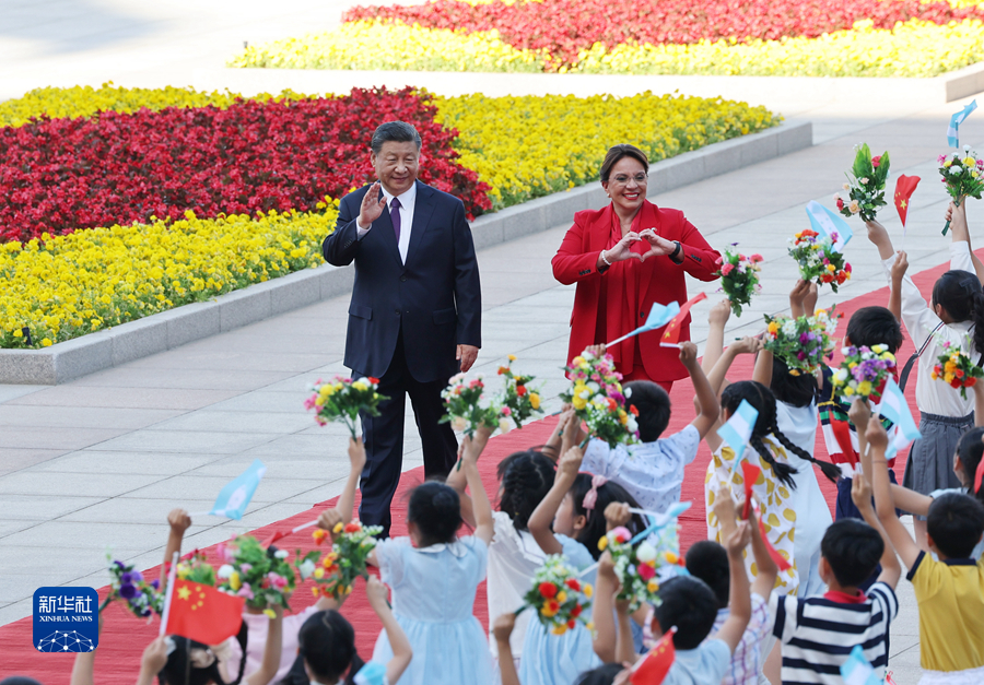 6月12日下午,國(guó)家主席習(xí)近平在北京人民大會(huì)堂同來(lái)華進(jìn)行國(guó)事訪問(wèn)的洪都拉斯總統(tǒng)卡斯特羅舉行會(huì)談。這是會(huì)談前,習(xí)近平在人民大會(huì)堂東門外廣場(chǎng)為卡斯特羅舉行歡迎儀式。新華社記者 王曄 攝