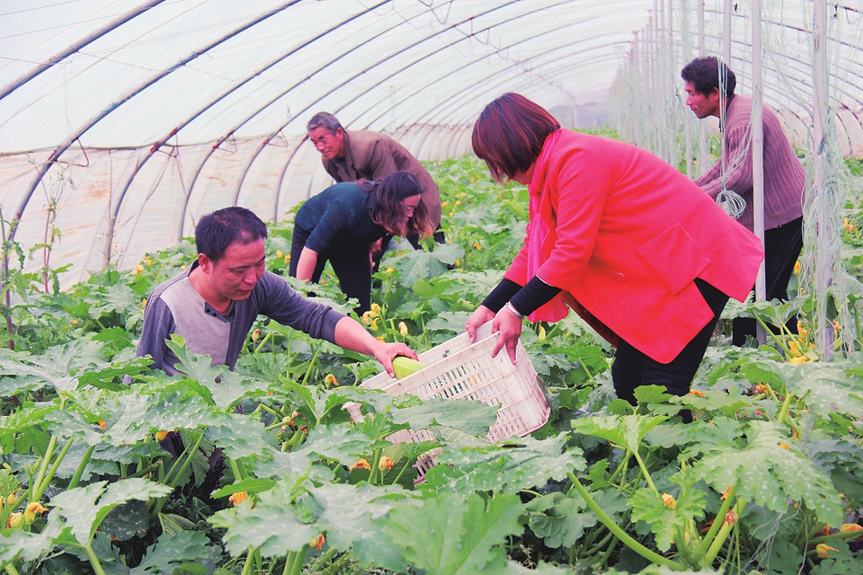 游客正在蔬菜大棚里采摘西葫蘆。本報(bào)實(shí)習(xí)記者劉迎春攝