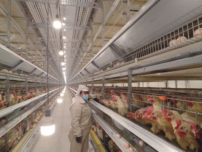 穿上無菌服,陳璐帶記者參觀雞舍。墻面是彩鋼夾芯板,耐腐、防火,保溫性能卓越,有效保障雞舍一年四季溫度恒定。雞籠表面是進(jìn)口鋁鋅合金涂層,顯著降低破蛋率、污蛋率。雞舍內(nèi)安裝有智能環(huán)境控制系統(tǒng),實時顯示和控制雞舍內(nèi)溫度、濕度、二氧化碳濃度、光照、通風(fēng)等環(huán)境指標(biāo)?!耙坏┠骋豁椫笜?biāo)低于或者超過設(shè)定范圍,系統(tǒng)就會啟動各項設(shè)備,直至指標(biāo)恢復(fù)正常?!标愯凑f。
