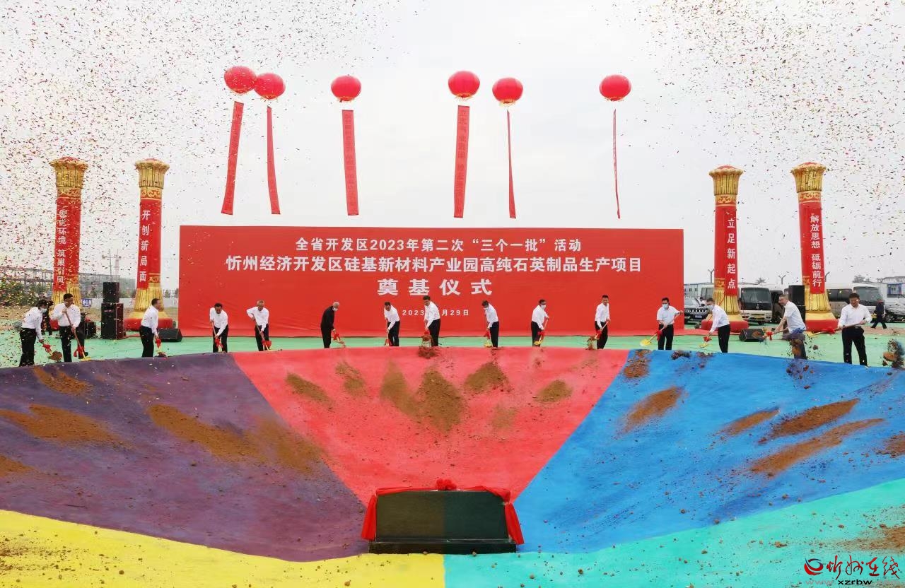 與省主會場同步,李建國主持舉行了忻州市“簽約一批”代表項目集中簽約活動。忻州經(jīng)濟開發(fā)區(qū)特種硅基新材料智能生產(chǎn)項目、原平經(jīng)濟技術(shù)開發(fā)區(qū)污廢水處理環(huán)保成套設(shè)備及配套產(chǎn)品生產(chǎn)項目、繁峙經(jīng)濟技術(shù)開發(fā)區(qū)15萬千瓦光伏發(fā)電項目、定襄經(jīng)濟技術(shù)開發(fā)區(qū)無憂(山西)數(shù)字金融產(chǎn)業(yè)園項目、岢嵐經(jīng)濟技術(shù)開發(fā)區(qū)宇航固體動力岢嵐試驗中心項目、靜樂現(xiàn)代農(nóng)業(yè)產(chǎn)業(yè)示范區(qū)羊肚菌研發(fā)種植推廣實驗基地建設(shè)項目、神池現(xiàn)代農(nóng)業(yè)產(chǎn)業(yè)示范區(qū)太平莊生態(tài)養(yǎng)殖示范基地建設(shè)項目、五臺現(xiàn)代農(nóng)業(yè)產(chǎn)業(yè)示范區(qū)植物蛋白飲品及休閑食品生產(chǎn)項目、五寨現(xiàn)代農(nóng)業(yè)產(chǎn)業(yè)示范區(qū)大辛莊繁育場項目、偏關(guān)生態(tài)文化旅游示范區(qū)生態(tài)農(nóng)業(yè)建設(shè)項目等10個代表項目分兩批進行現(xiàn)場簽約。簽約儀式結(jié)束后,與會人員赴“開工一批”代表項目——“硅基新材料產(chǎn)業(yè)園高純石英制品生產(chǎn)建設(shè)項目”現(xiàn)場培土奠基。隨后赴重點建設(shè)項目——“10GW智能光伏電池生產(chǎn)基地項目”實地觀摩,該項目聚焦“奮戰(zhàn)7.30、8.30、9.28”目標(biāo),分階段確保項目竣工投產(chǎn)。
