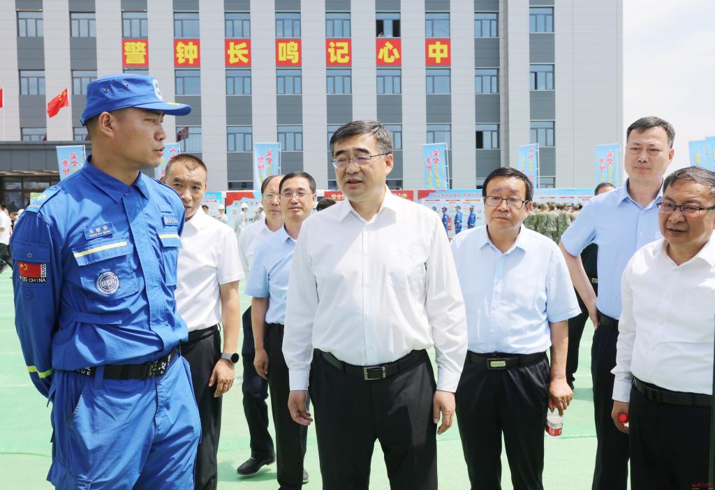 檢查消防救援大隊(duì)、礦山救援隊(duì)和藍(lán)天救援隊(duì)的應(yīng)急裝備器材。范濤 攝