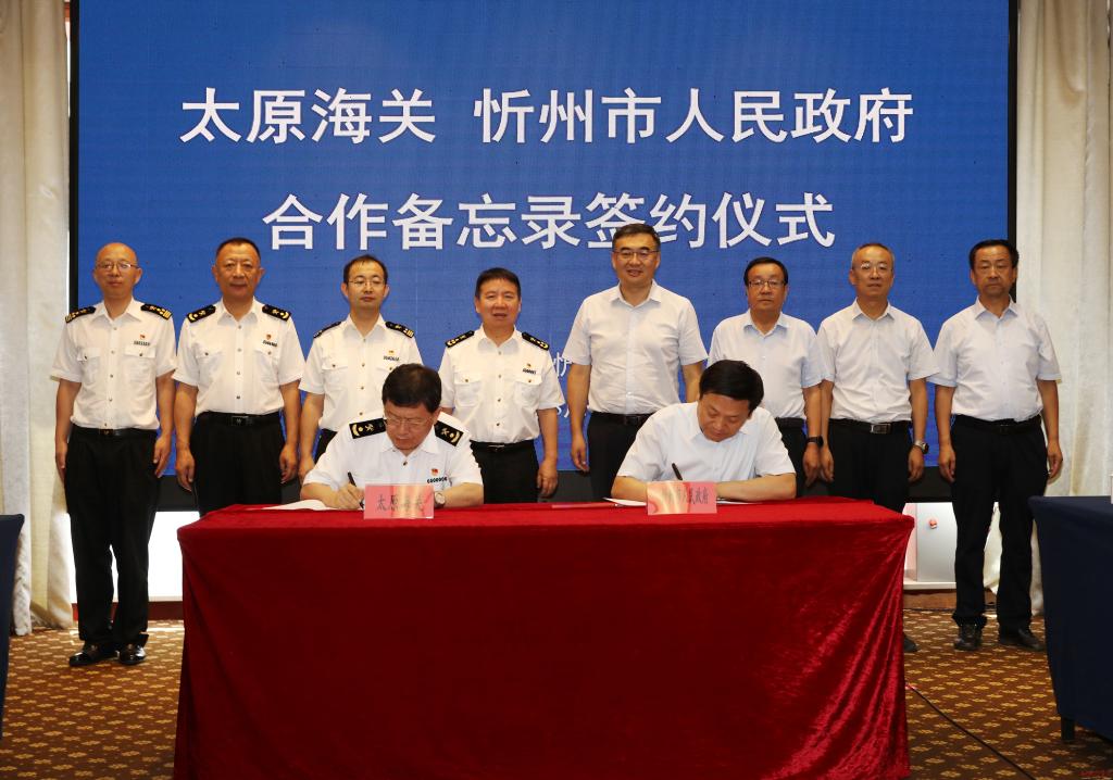 8月6日,忻州市人民政府與太原海關(guān)合作備忘錄簽約儀式在忻舉行。市委副書記、市長李建國,太原海關(guān)黨委書記、關(guān)長江林分別致辭;市政府黨組成員孟宏斌、太原海關(guān)副關(guān)長廉慧鋒代表雙方簽約;市政府秘書長張艮生主持簽約儀式。太原海關(guān)、忻州海關(guān),忻州市商務(wù)、財政、公安、市場監(jiān)管部門和五臺山機場負責人等見證簽約。