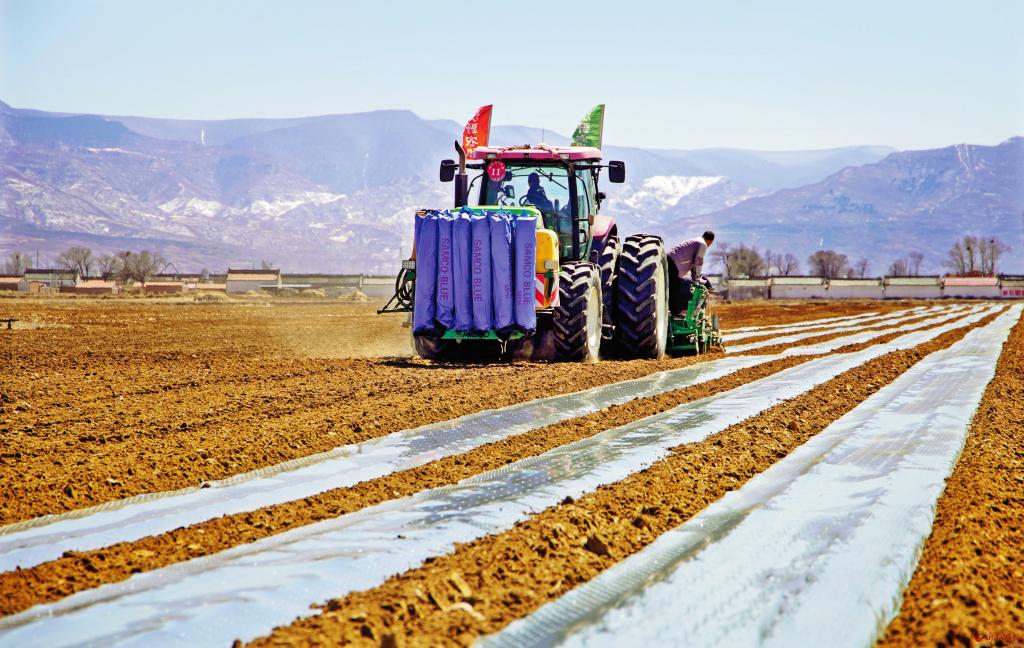 4月10日,五寨縣現(xiàn)代加工型馬鈴薯產(chǎn)業(yè)示范園的萬畝馬鈴薯輪作玉米播種工作全面啟動,預(yù)計今年輪作面積達(dá)2萬畝以上。為加快輪作進(jìn)度,園區(qū)引進(jìn)中國神農(nóng)農(nóng)業(yè)機械發(fā)展(山西)集團(tuán)有限公司大型玉米綜合播種機,該播種機單次投種、投肥,鋪膜、布管面積可達(dá)100畝以上,預(yù)計全部輪作玉米播種工作將在5月初完成。圖為大型玉米綜合播種機正在播種。 (張向榮 攝