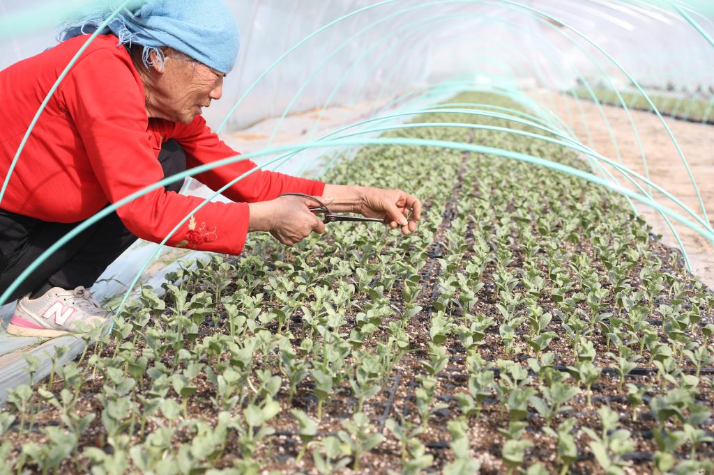 農(nóng)民正在修剪幼苗
