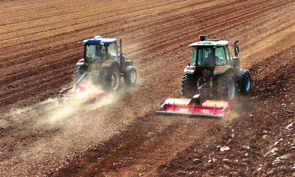 原平市王家莊鄉(xiāng)東泥河村的農(nóng)田里,搭載北斗導航系統(tǒng)的大型自動駕駛拖拉機正牽引著施肥鋪滴灌一體起壟機,緊張有序地進行開溝、起壟、施肥作業(yè),同時完成滴灌帶鋪設(shè)工作。(樊晶璟攝)