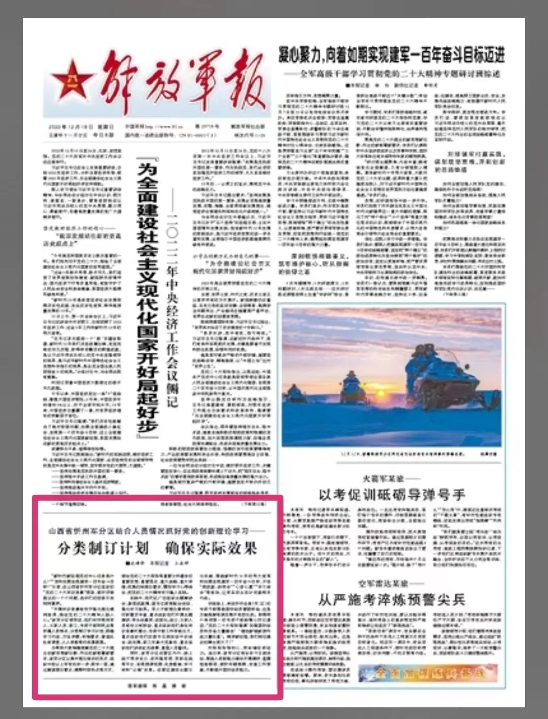 為幫助大家準確理解黨的二十大提出的新思想新論斷、作出的新部署新要求,該軍分區(qū)以集中理論培訓的形式,組織中校以上軍官先學一步、深學一層,通過解讀理論要點、闡釋時政熱點等方式,領(lǐng)會黨的二十大報告等重要文件蘊含的重要思想、重要觀點、重大戰(zhàn)略、重大舉措;收集歸納理論要點,撰寫學習心得體會,把黨的二十大精神學習融入實踐。