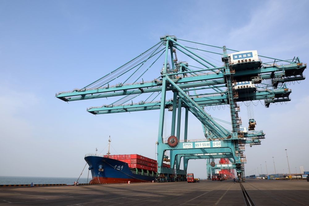 3月9日,船舶停靠在黃驊港綜合港區(qū)集裝箱碼頭進(jìn)行卸船作業(yè)。新華社記者 駱學(xué)峰 攝