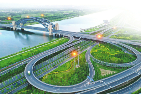晉陽橋,形如彩帶、態(tài)似彩虹,完美地詮釋了傳統(tǒng)與現(xiàn)代交融的設(shè)計(jì)理念,展現(xiàn)出莊重的對稱式美。夕陽西下,站在晉陽橋段東岸“汾河晚渡”觀景平臺遠(yuǎn)眺西山,天際線、山脊線、水岸線層次分明,河面波光粼粼,畫舫古樸典雅,晉陽橋雄偉絢麗,呈現(xiàn)出一幅河、舫、橋、山渾然一體的秀美畫卷。