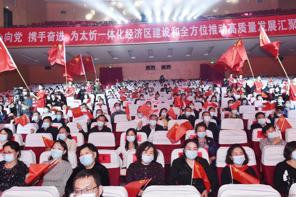 氣勢磅礴的合唱伴舞《領航》拉開了演出的序幕。歌伴舞《忻州古城等你來》帶你走進千年古城、走進詩情畫意的“康養(yǎng)忻州”,領略晉北文化;音詩畫朗誦《奮進新征程 建功新時代》表達了各民主黨派精誠合作,為全方位推動忻州高質量發(fā)展凝聚強大政治力量的信心和決心;歌曲《太忻情》帶領大家聆聽忻州全方位推動高質量發(fā)展的鏗鏘步伐,感受如火如荼、方興未艾的建設場面;《擼起袖子加油干》重溫了習近平總書記殷殷囑托;河曲二人臺《歡天喜地迎盛會》讓我們堅信即將召開的二十大必將帶領全國人民從勝利走向勝利;情景劇《在正道上行》再現(xiàn)了民營企業(yè)家有大愛、有擔當、無私奉獻助力鄉(xiāng)村振興和經濟社會全面發(fā)展的情景,讓在場的每個人都深受感染;《騰飛吧,晉龍》《風雪長征》《山丹丹開花紅艷艷》《親吻祖國》《紅旗飄飄》《為祖國干杯》……一首首歌曲昂揚向上,一段段舞蹈剛勁有力,令人精神振奮、激情滿懷,唱響了朝氣蓬勃、同心追夢的時代旋律,唱出了全市人民熱愛家鄉(xiāng)、建設家鄉(xiāng)的共同情懷,表達了忻州兒女奮進新征程、建功新時代的壯志豪情。
