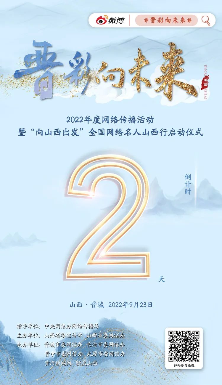 “晉彩向未來”年度網(wǎng)絡(luò)傳播活動(dòng),是“非凡十年?奮‘晉’未來”系列網(wǎng)絡(luò)主題宣傳活動(dòng)之一。活動(dòng)共分為短視頻征集活動(dòng)、全國網(wǎng)絡(luò)名人山西行、優(yōu)秀作品展播三階段推進(jìn),目前短視頻征集已在線上預(yù)熱開啟?!皶x彩向未來”2022年度網(wǎng)絡(luò)傳播活動(dòng)暨“向山西出發(fā)”全國網(wǎng)絡(luò)名人山西行活動(dòng)將于9月23日正式啟動(dòng)。