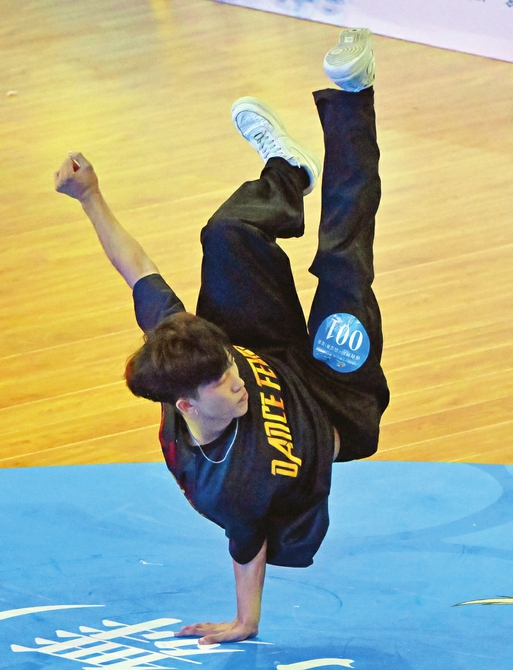 8月17日,省第十六屆運(yùn)動會體育舞蹈(霹靂舞)大賽吸引眾人眼球。本報記者劉通 本報通訊員王中勛攝