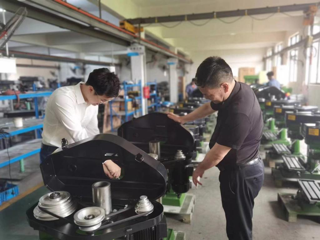 受疫情影響,2021年外貿(mào)企業(yè)訂單量隨著海運(yùn)放緩、海外需求下降而減少。生產(chǎn)閑下來了,但繆繼云和兒子繆帥濤對產(chǎn)品改良的思考沒有停止。在不斷調(diào)試臺鉆時,他們發(fā)現(xiàn),調(diào)速必須動手換皮帶,“為什么不能像調(diào)收音機(jī)一樣調(diào)動速率呢?”兩人一商量,立即開始畫草圖,接著去銀行貸款投入模具開發(fā)。