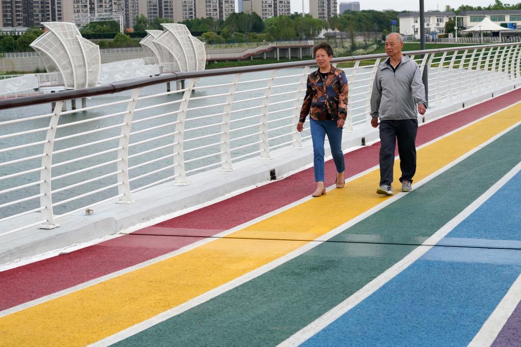 5月17日,市民在小溪港漁咀公園散步休閑。新華社記者馬寧攝