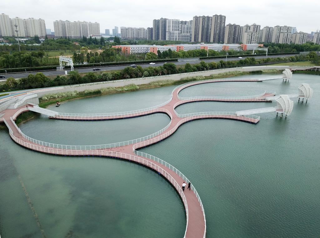 “我們按生態(tài)鏈要素,采用底泥改良、水生植物系統(tǒng)立體構(gòu)建、水生動(dòng)物及土著微生物補(bǔ)給、生態(tài)監(jiān)測(cè)、運(yùn)行維護(hù)等技術(shù)措施,構(gòu)建完善的生態(tài)體系,通過(guò)自養(yǎng)生態(tài)系統(tǒng)與異養(yǎng)生態(tài)系統(tǒng)的協(xié)同作用,打造了一座包括植被自然群落、沿湖生態(tài)濕地、親水棧道、觀鷺平臺(tái)、彩虹跑道的現(xiàn)代化城市濕地公園。”吳湧說(shuō)。