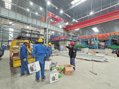一個個待組裝的設備整齊排列,一輛輛工程車來回穿梭作業(yè)……走進宏達集團年產100萬噸薄帶鑄軋項目工地,機器轟鳴,焊花飛濺,數百名工人分布在鋼架“叢林”間進行鑄機、軋機等設備的安裝,不遠處,“爭分奪秒搶工期,一絲不茍創(chuàng)精品”的橫幅格外醒目。