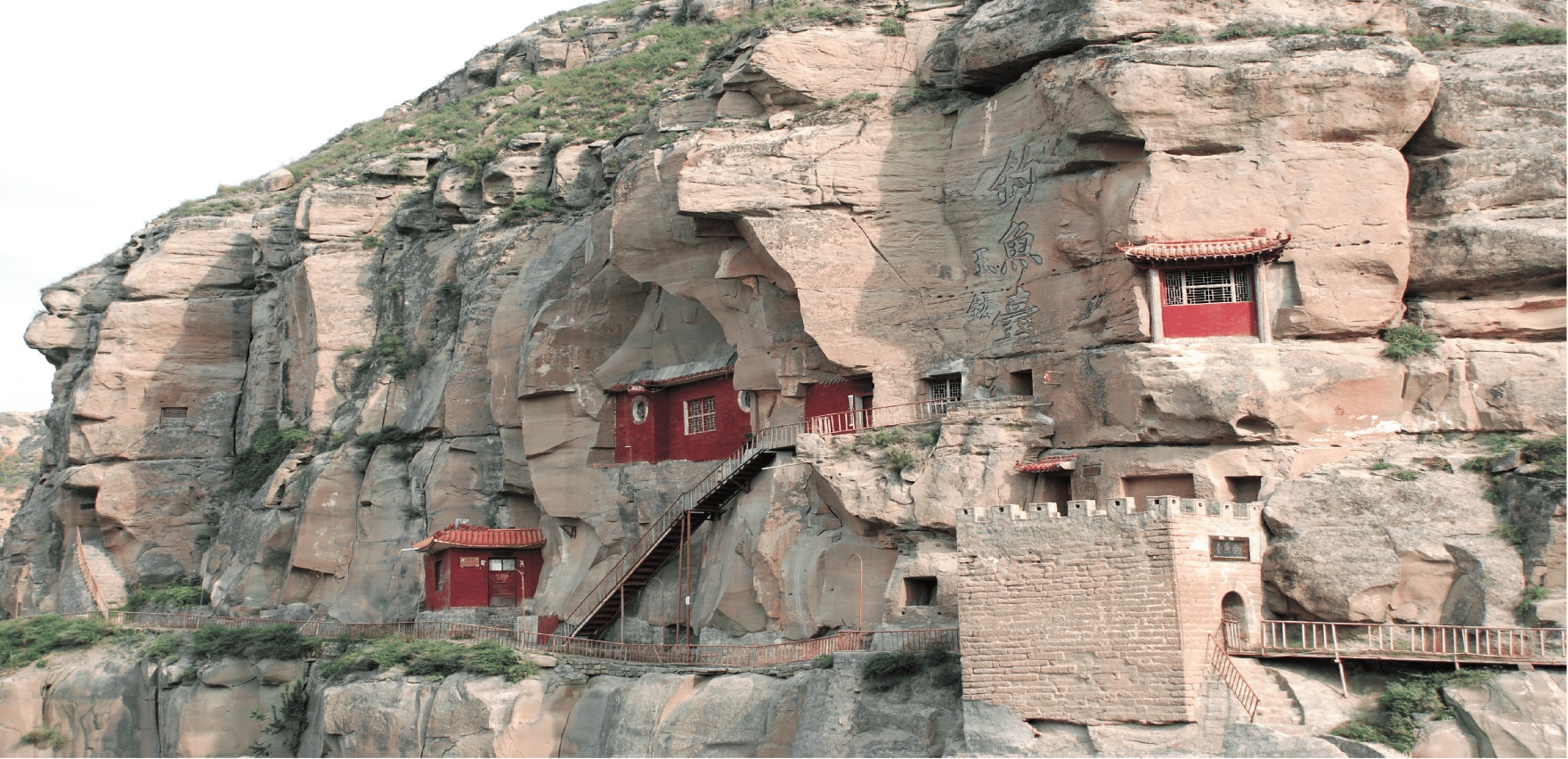 故城石窟位于保德縣楊家灣鎮(zhèn)故城村西1500米、黃河?xùn)|岸石崖上。清順治二年(1645),由陳奇瑜構(gòu)筑,歷時(shí)三年建成,建有呂仙祠等建筑。故城石窟坐東向西,占地面積約600平方米。向南石砌的古堡式門洞,門洞上方匾書(shū)“釣魚(yú)臺(tái)”,頂部砌有女兒墻垛口。山壁上有大小不等的10孔人工開(kāi)鑿的石窟。