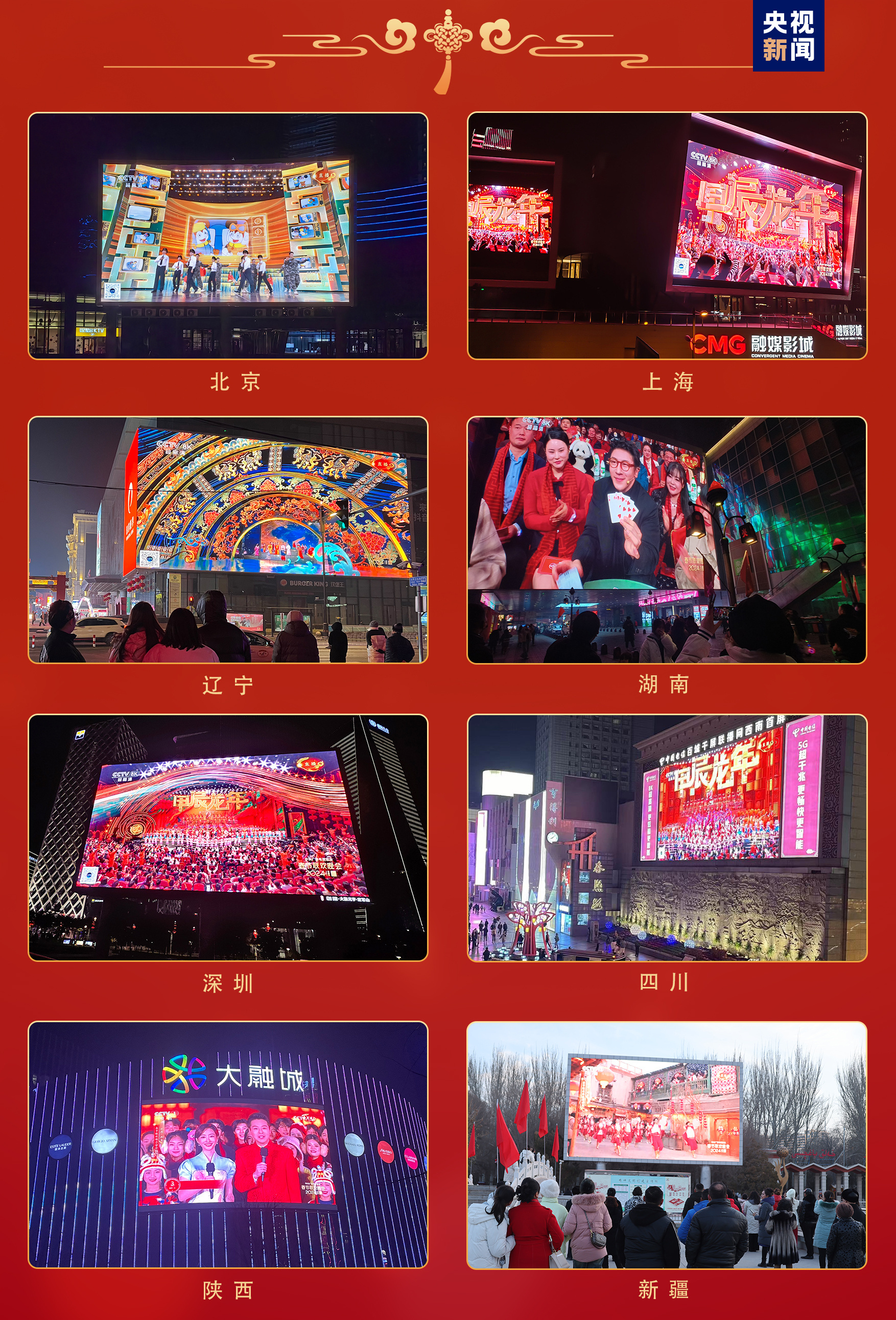 全球看春晚。作為聯(lián)合國大會將農(nóng)歷新年列為聯(lián)合國假日后的首個新年,總臺主辦的“春晚序曲 全球看春晚”活動在美國、肯尼亞、瑞士等多國舉辦近40場;各大洲49個國家、90座城市的3000余塊公共大屏直播和宣介總臺春晚;世界最高建筑迪拜哈利法塔、非洲第一高樓埃及新行政首都中央商務(wù)區(qū)標(biāo)志塔、瑞典斯德哥爾摩市中心國王花園廣場、巴西多娜·琳杜公園等多個全球地標(biāo)性建筑上演春晚燈光秀……靈動吉祥的“龍辰辰”將中國新年的美好祝愿傳遍全球。