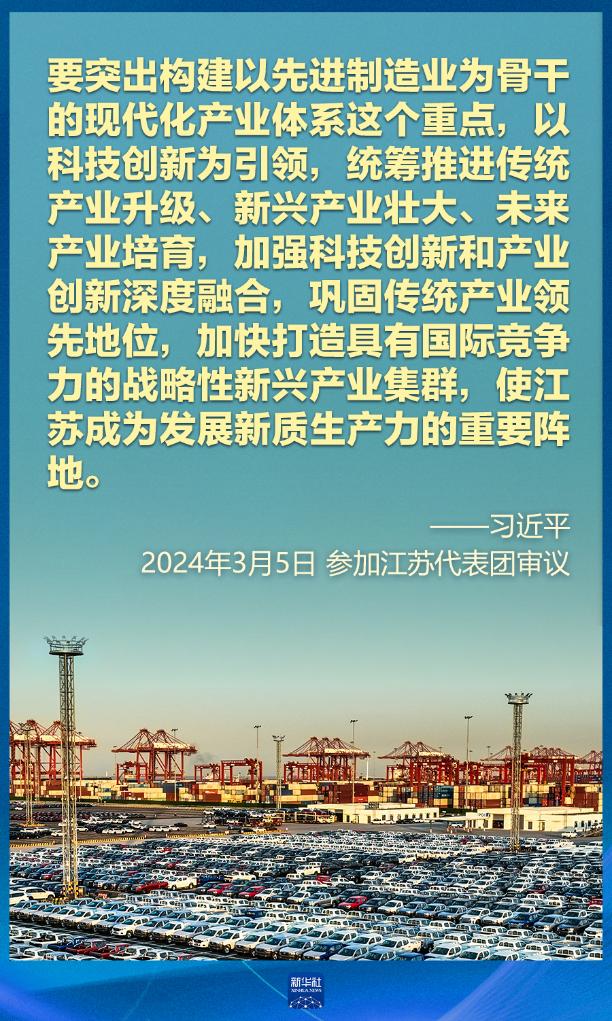 5日下午,習(xí)近平在參加他所在的十四屆全國(guó)人大二次會(huì)議江蘇代表團(tuán)審議時(shí)強(qiáng)調(diào),因地制宜發(fā)展新質(zhì)生產(chǎn)力。