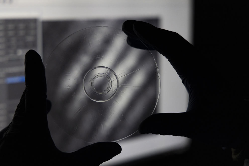 2024年2月29日在上海光機所光學實驗室拍攝的“超級光盤”。2月21日,中國科學院上海光學精密機械研究所對外宣布存儲容量是普通光盤上萬倍、普通硬盤上百倍的“超級光盤”誕生。據(jù)計算,十幾張“超級光盤”就可以存儲下整個國家圖書館的數(shù)據(jù)量。
