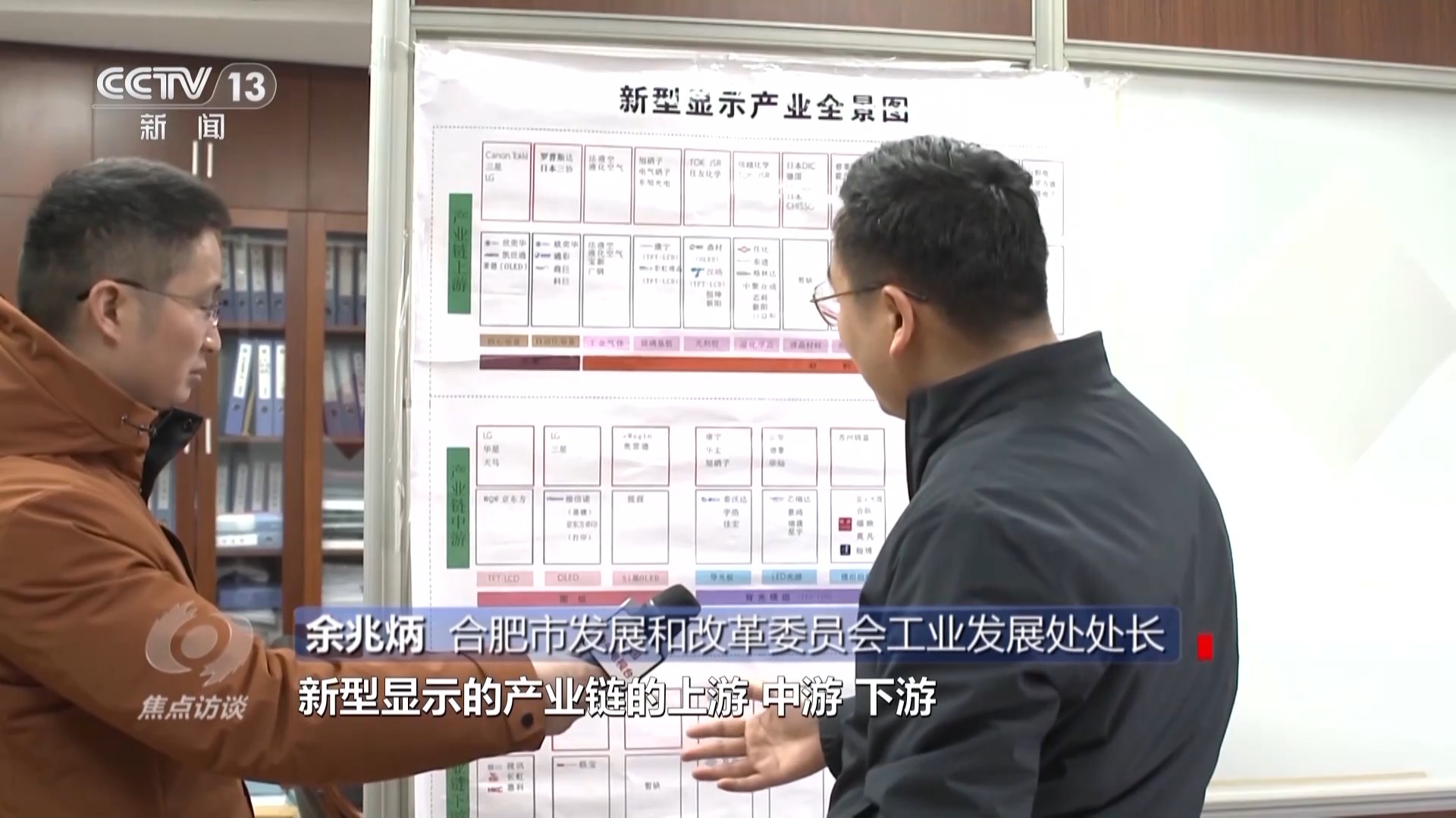 合肥市發(fā)展和改革委員會工業(yè)發(fā)展處處長 余兆炳:新型顯示產業(yè)全景圖上面顯示了合肥市發(fā)展新型顯示的產業(yè)鏈的上游、中游、下游本地的優(yōu)勢企業(yè)和龍頭企業(yè)。有這個全景圖其實是我們對標作戰(zhàn)、掛圖作戰(zhàn)、非??梢暬淖鲬?zhàn)。