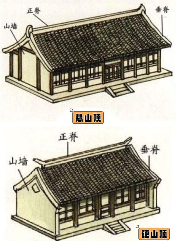 圖為懸山頂和硬山頂?shù)膮^(qū)別 圖片來源于網(wǎng)絡(luò)