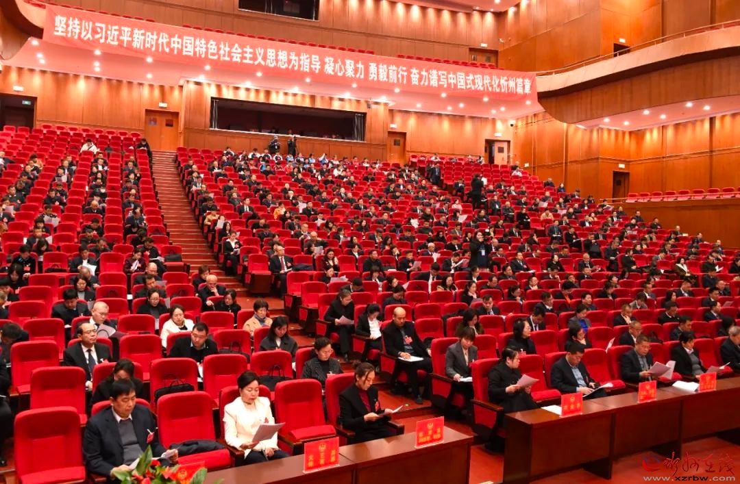 當日上午,忻州大劇院大劇場布置簡樸,氣氛莊重熱烈。中國人民政治協(xié)商會議會徽懸掛在主席臺正中,十面鮮艷的紅旗分列兩側。會場內高高懸掛著大紅橫幅:堅持以習近平新時代中國特色社會主義思想為指導,凝心聚力,勇毅前行,奮力譜寫中國式現(xiàn)代化忻州篇章。